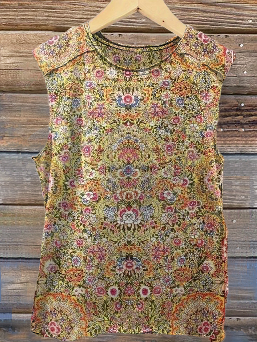 Vintage Floral Art Print 100% Cotton Casual Tank Top
