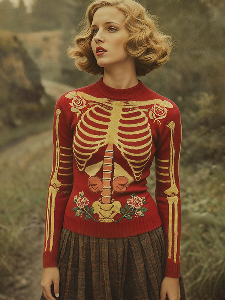 Vintage Halloween Anatomy Art Rose Jacquard Knitted Sweater