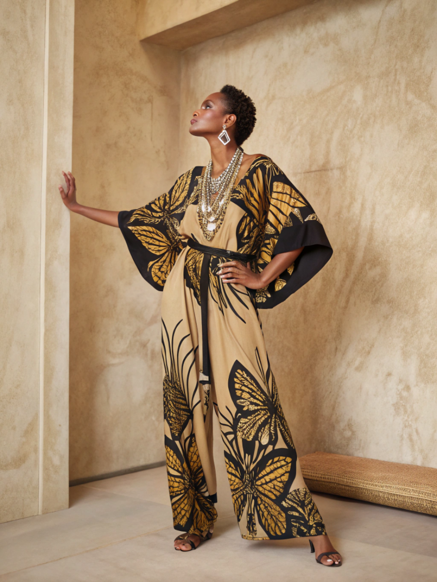 Pattern elements: Butterfly prints are the main elements. The butterflies are of various shapes and lifelike, as if dancing in the flowers, adding a romantic and agile atmosphere to the jumpsuit. The color matching of the prints is rich and coordinated. There may be a variety of soft tones such as pink, purple, and yellow, creating a fresh and sweet atmosphere. There may also be black, white and colorful butterflies, showing a fashionable and individual style.Material fabric: Made of polyester fabric, it has the characteristics of being crisp and wrinkle-resistant. It is very convenient to take care of. Even after long-term activities, it can maintain a good version for daily wear. At the same time, polyester fabric also has certain wear resistance and corrosion resistance, can withstand the test of daily wear and washing, and has a long service life.