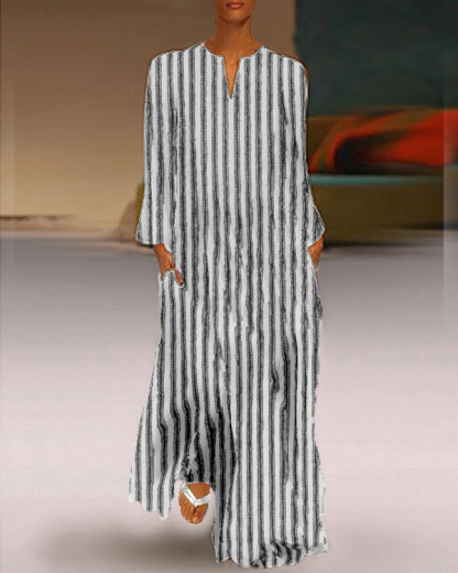 Women's Elegant Long Sleeve Stripe Print Casual Dress