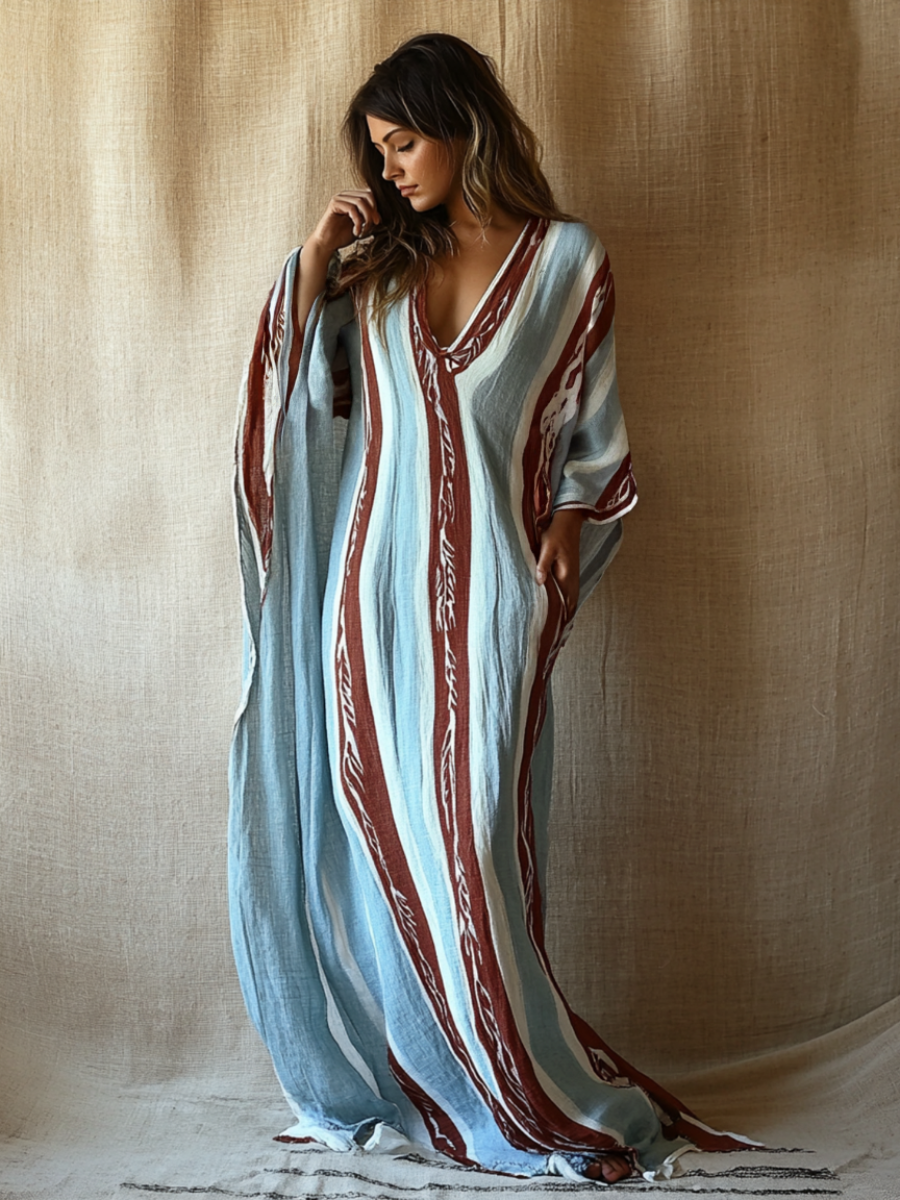 Art prints: The unique red stripe print design on a blue background adds a vibrant bohemian vibe to your wardrobe.