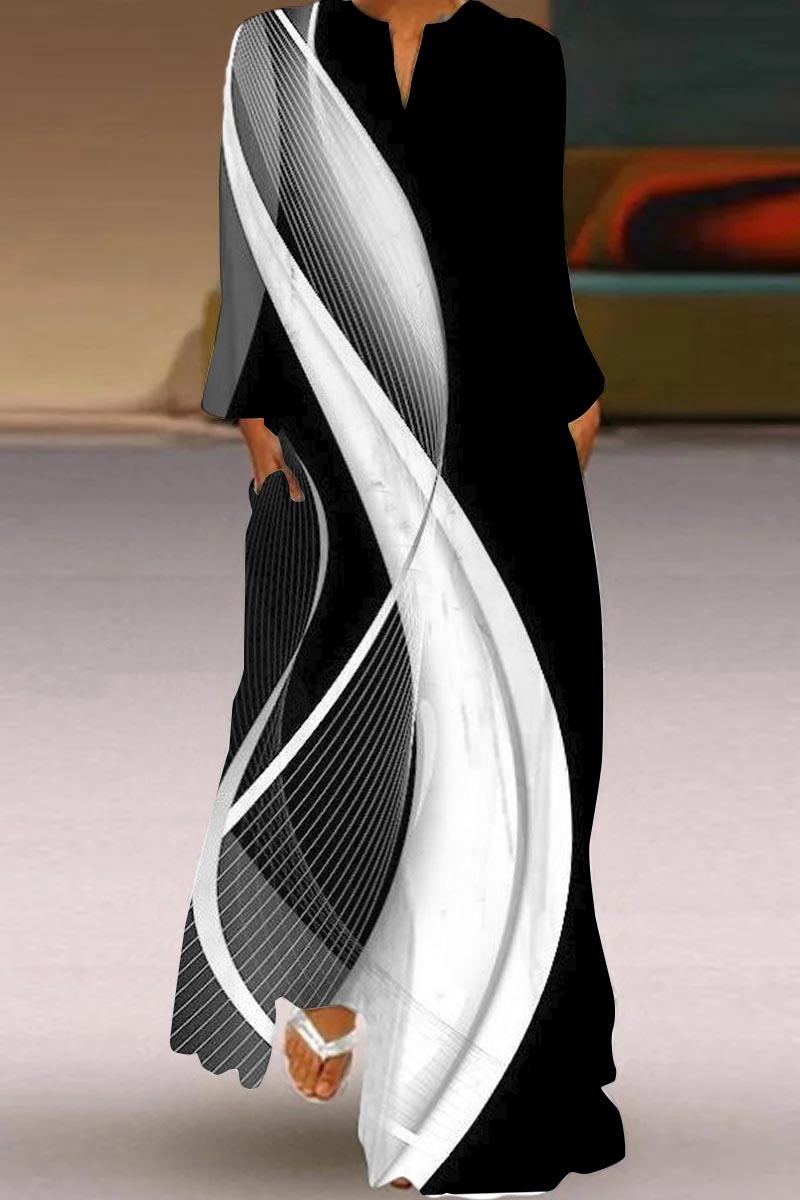 Casual Fashion Long Sleeve Black and White Striped Print Dress