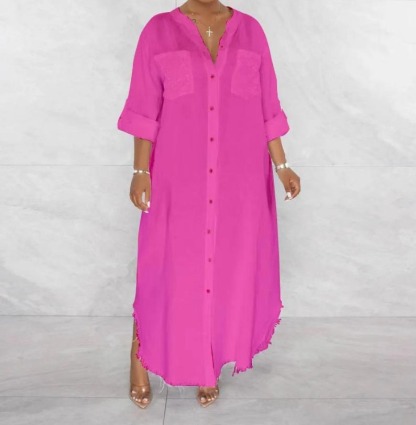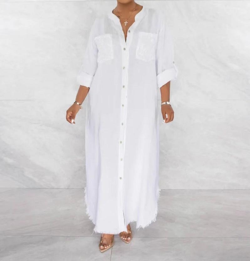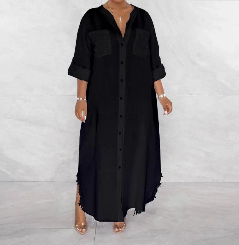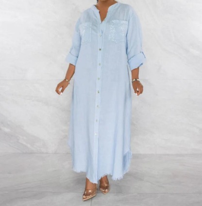 Casual Loose Long Sleeve Button Shirt Long Dress