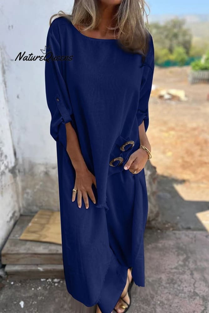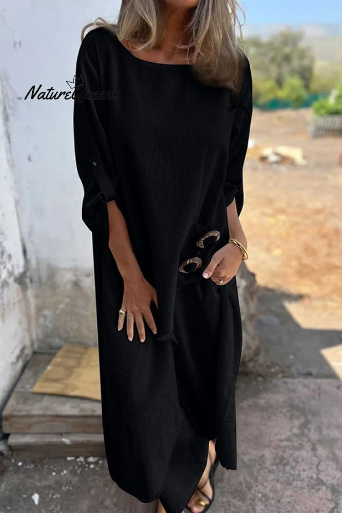 Jamilah Linen Blend Ring Detail Midi Blouse and Elastic Waist Pocketed Loose Pants Set