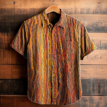 Men's Art Painting Ethnic Style Vertical Stripe Gradient Print Lapel Short Sleeve Shirt