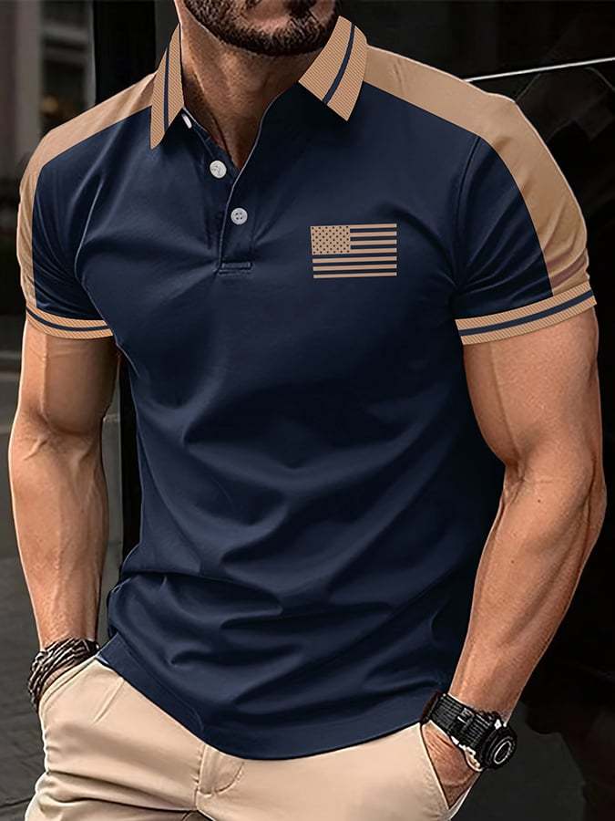Men's Retro Flag Print Polo Shirt