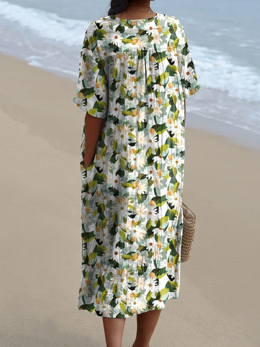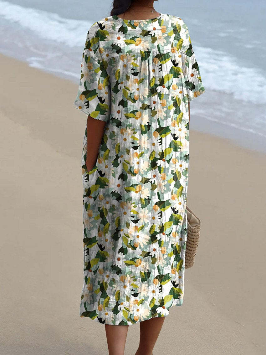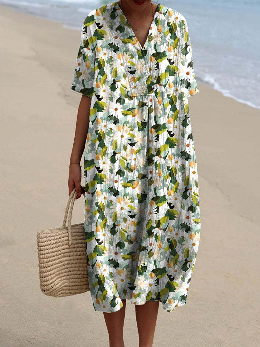 Spring Daisy Field Seamless Pattern Printed Women's Flowy Dress