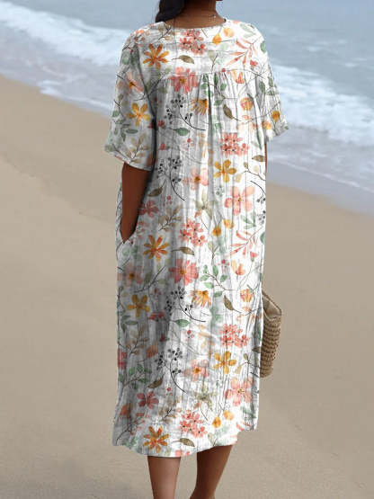 Sweet Watercolor Floral Repeat Pattern Printed Women's Flowy Dress