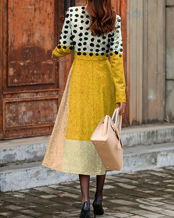 Vintage Abstract Art Print Round Neck Long Sleeve Dress