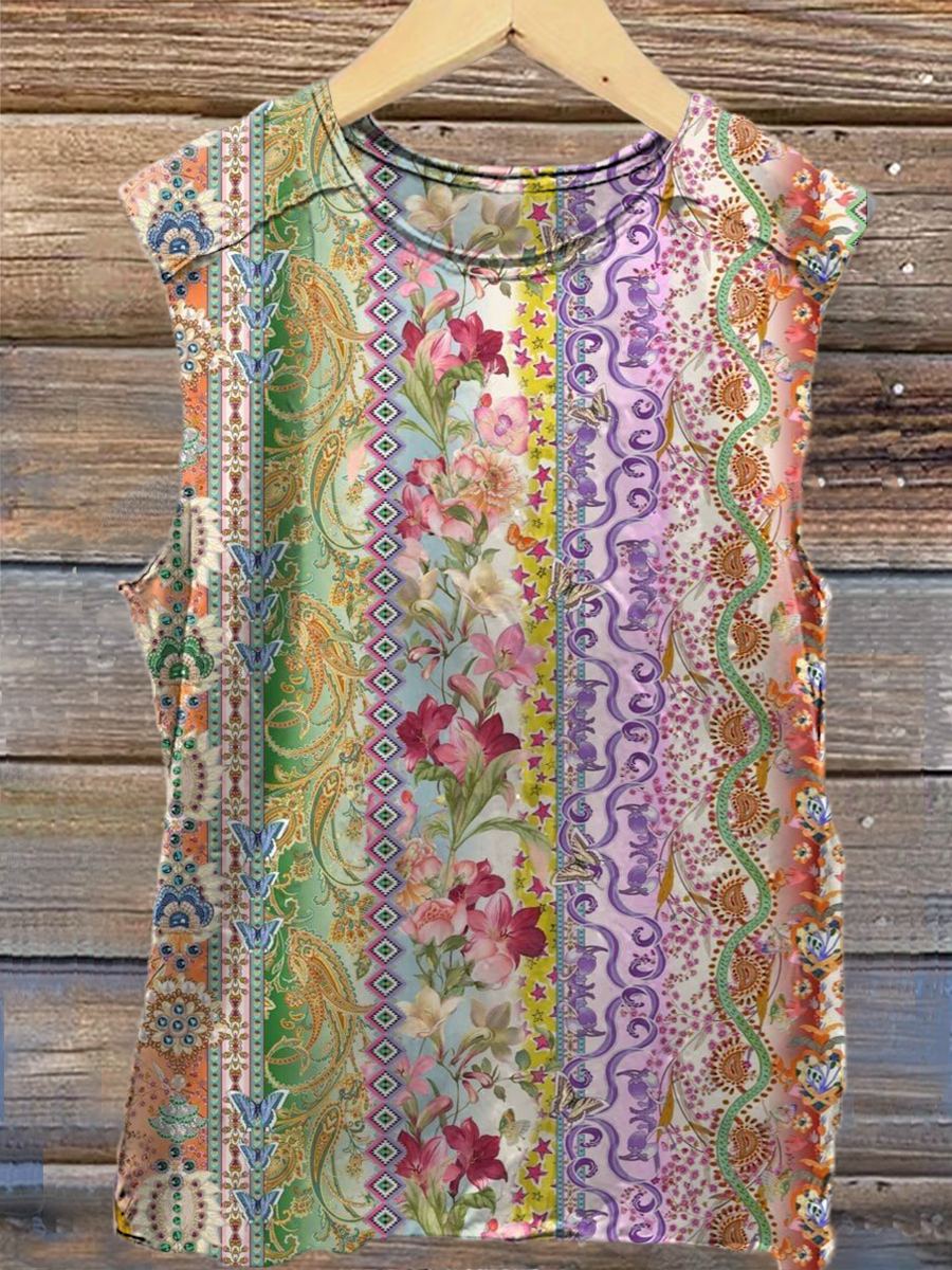 Vintage Floral Art Print 100% Cotton Casual Tank Top