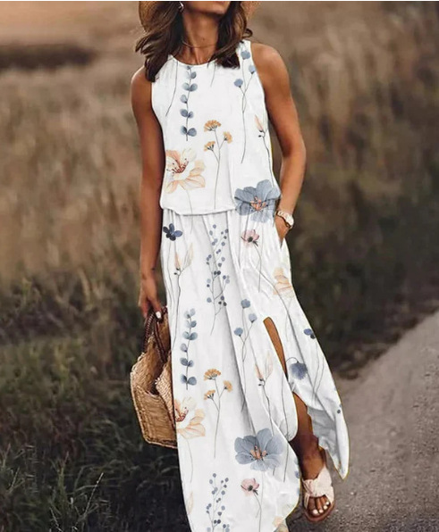 Sleeveless casual printed maxi dress
