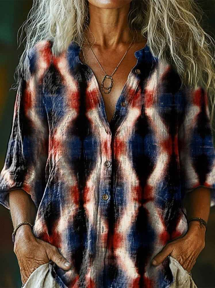 Women's Ethnic Tie-dye Art Pattern Print Casual Cotton Linen Shirt