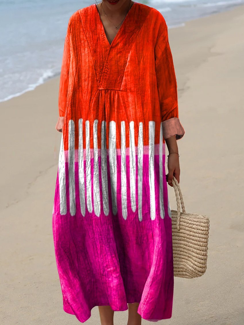 Women's Hot Pink & Orange Bold Abstract Art Print Flowy Dress