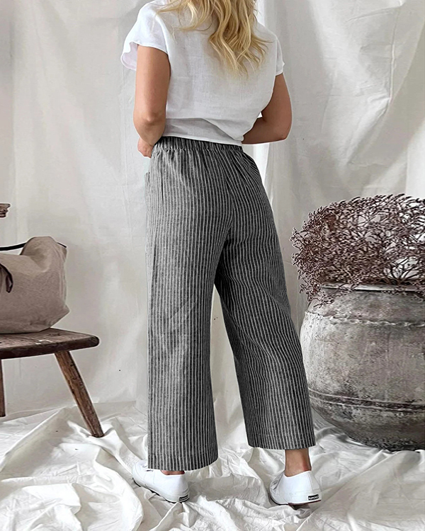 Women's Stripe Print Casual Loose Pants