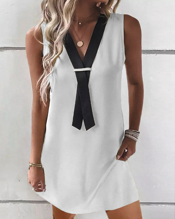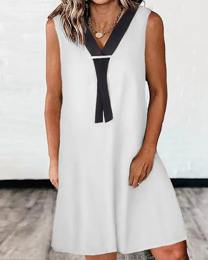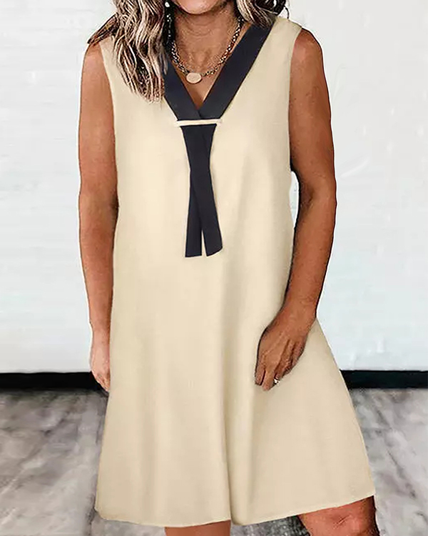 Women's V-neck Tie Solid Loose Sleeveless Casual Dress
