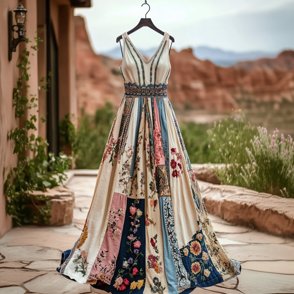 Women's Vintage Floral Art Cotton And Linen Dress