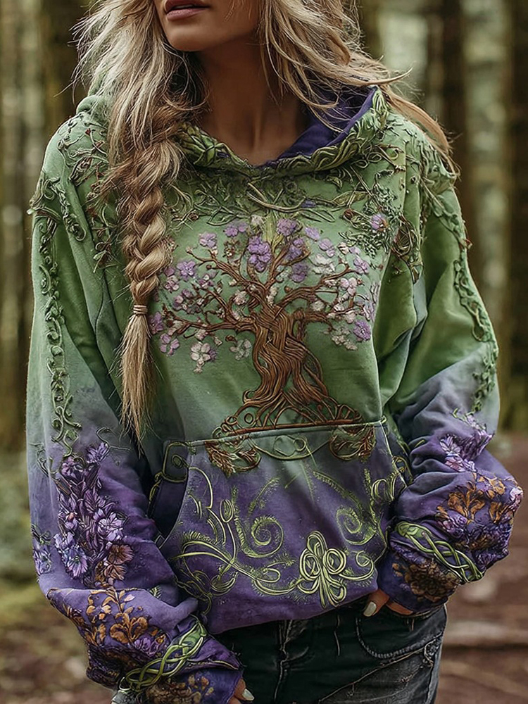 Women's Vintage Viking Tree Of Life Art Gradient Comfort Hoodie