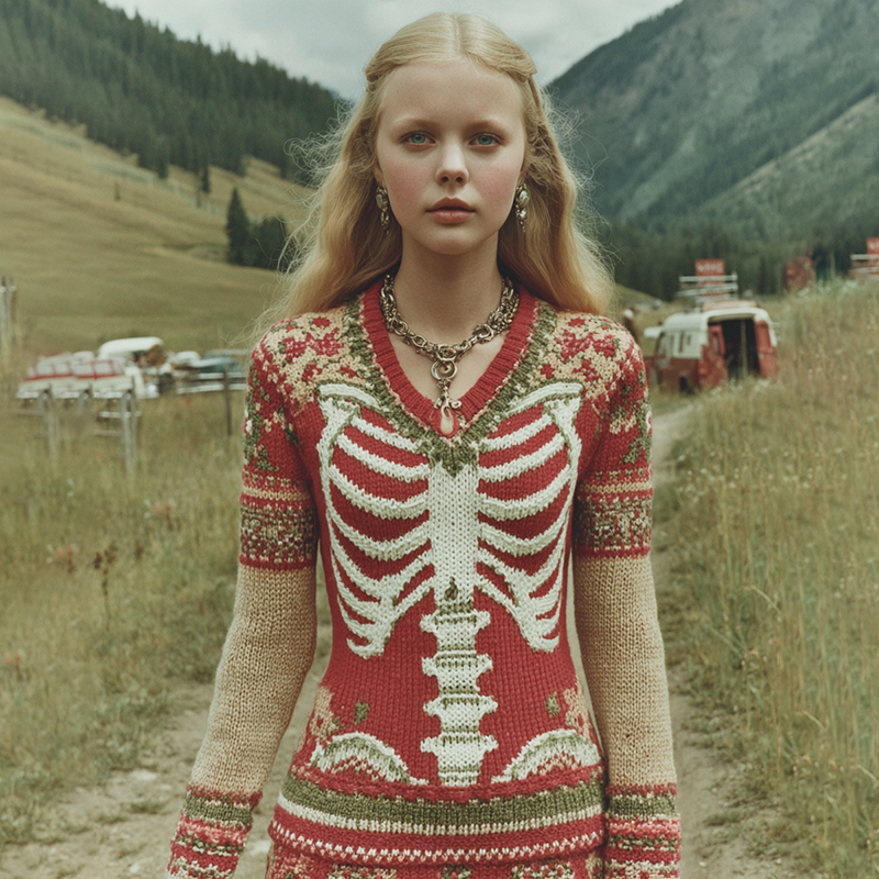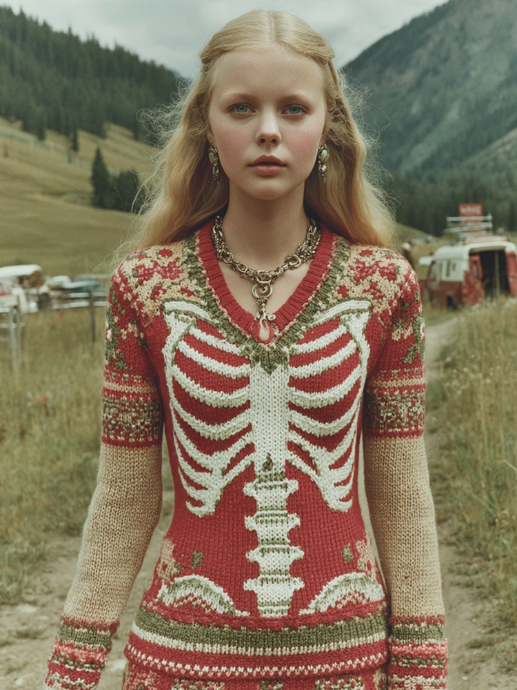 Vintage Halloween Skeleton Art Knit Cozy Sweater