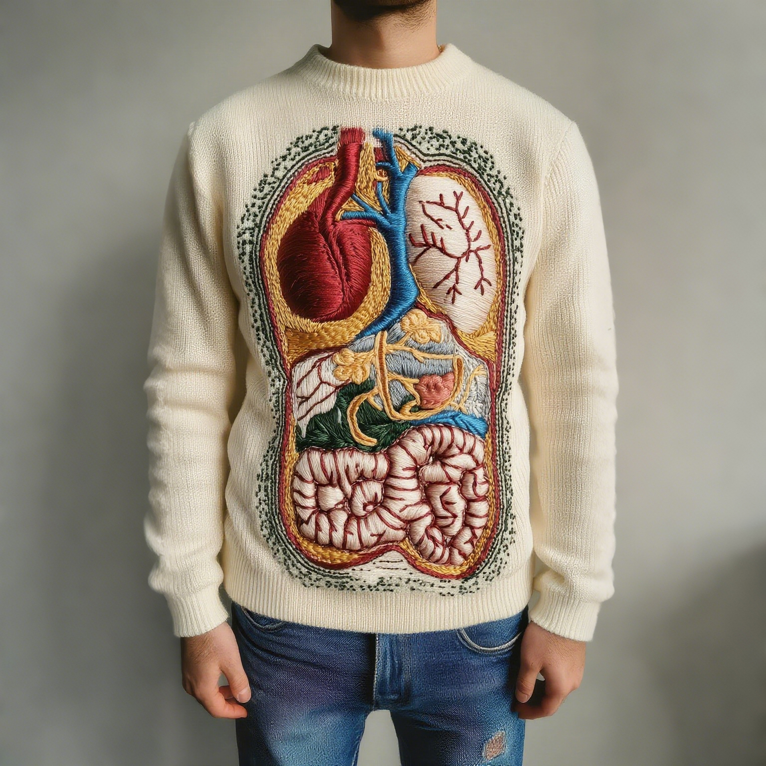 Vintage Halloween Anatomy Art Chunky Knitted Sweater
