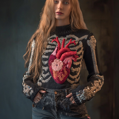 Female Anatomy Art Heart Antique Black Round Neck Sweater
