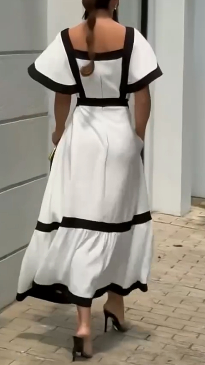 Ladies' Square Collar Striped Patchwork Casual Dress