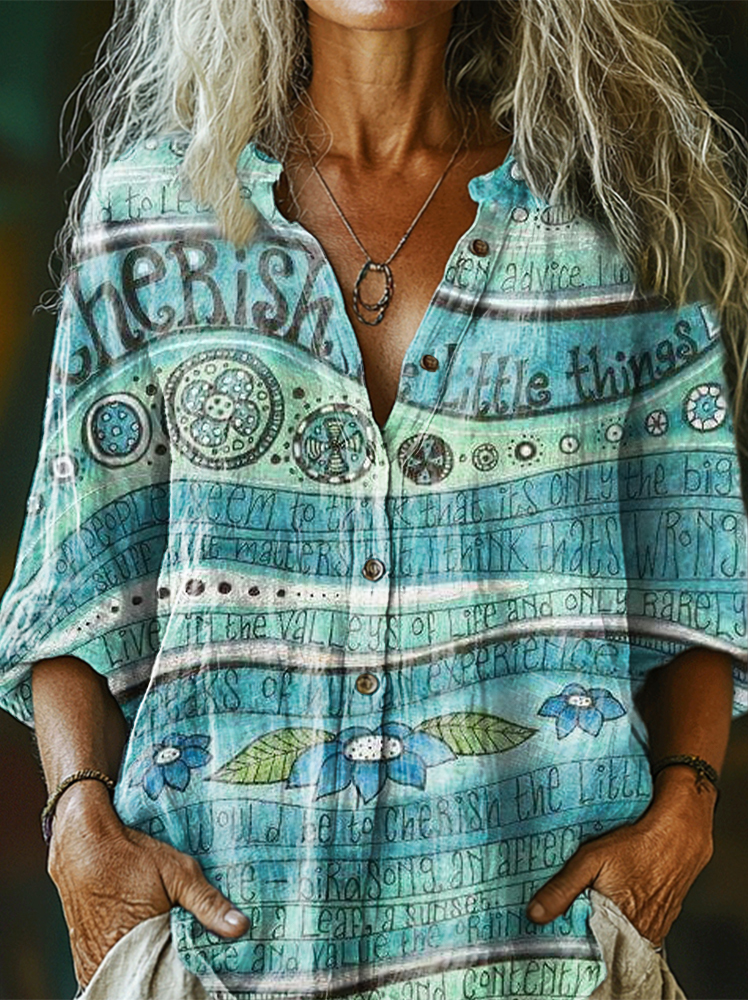 Women's Art Painting Gradient Letters Graffiti Retro Print Long Sleeve Shirt