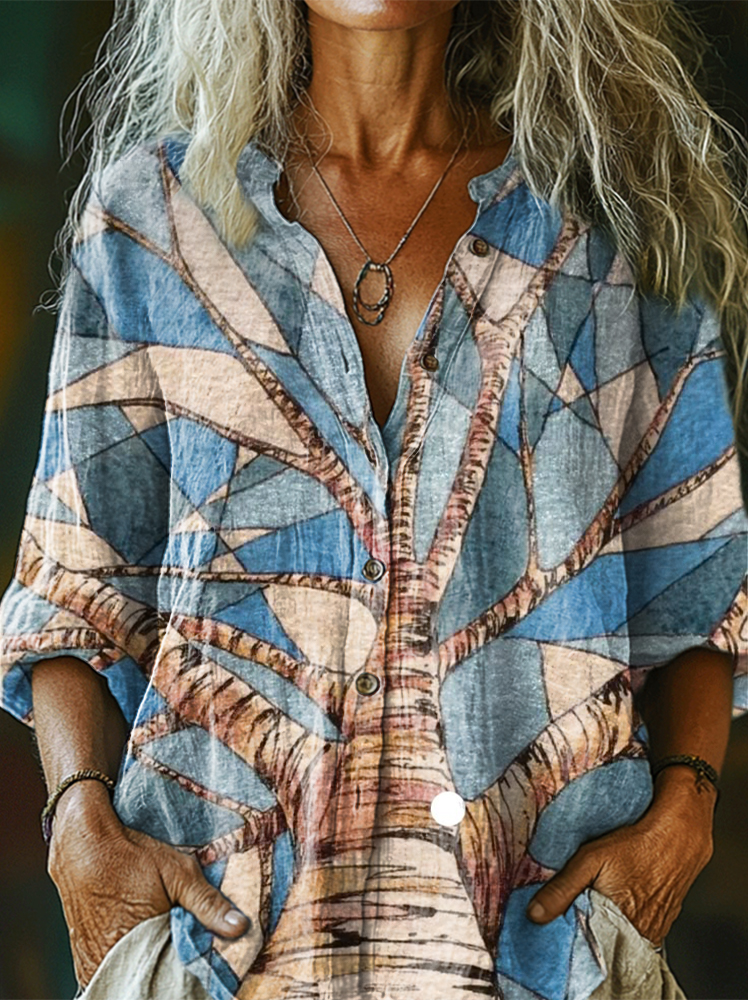 Women's Art Painting Nature Fun Vintage Print Long Sleeve Shirt