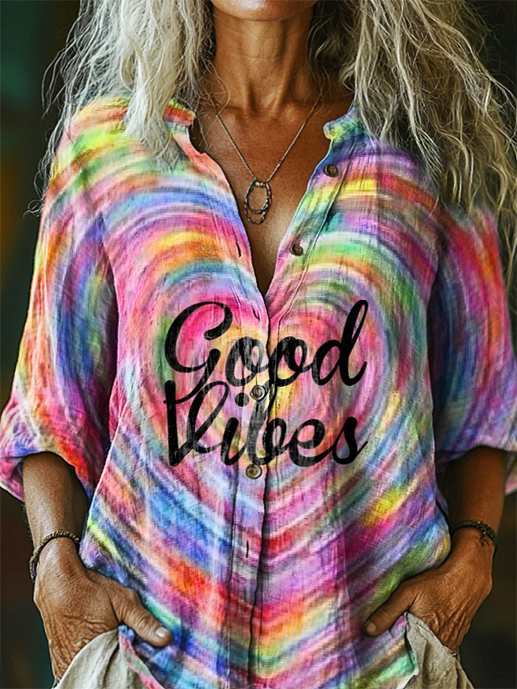 Women's Colorful Heart Pattern Art Print Linen Cotton Casual Shirt