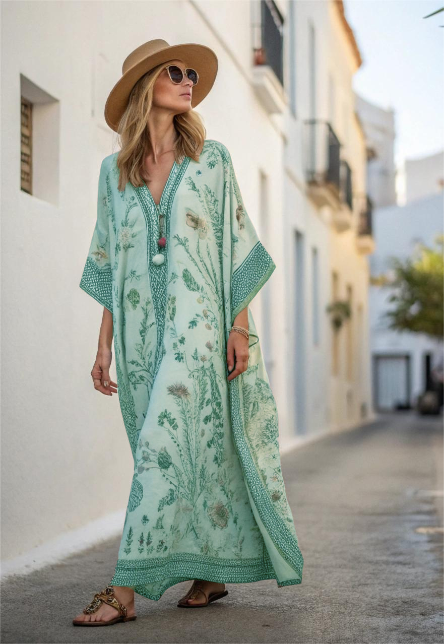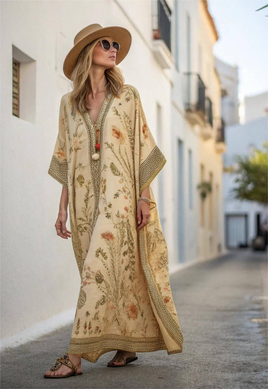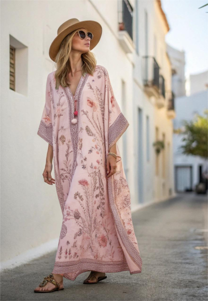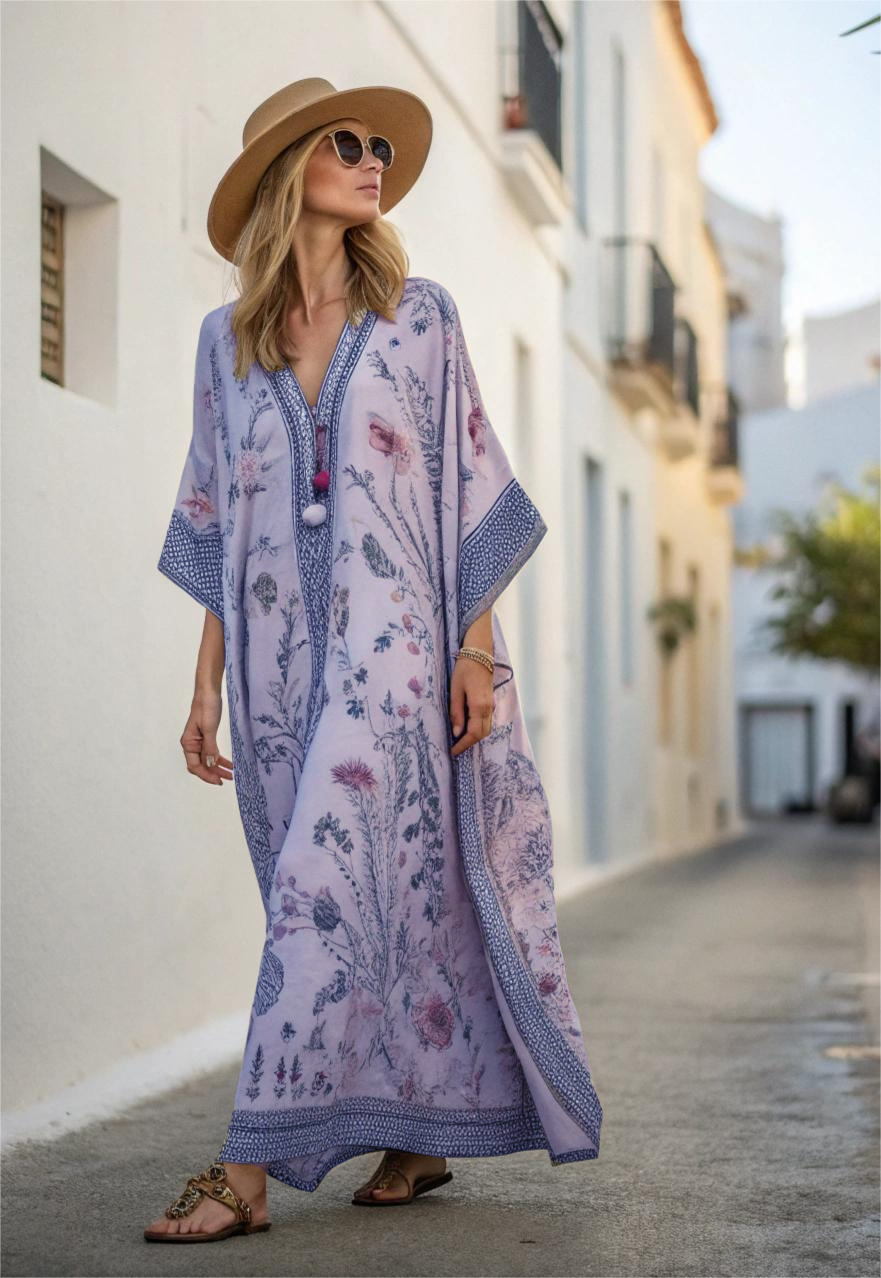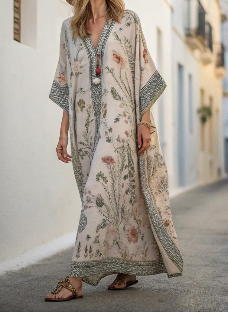 Contton & Linen Long Sleeve Kaftan Maxi Dress
