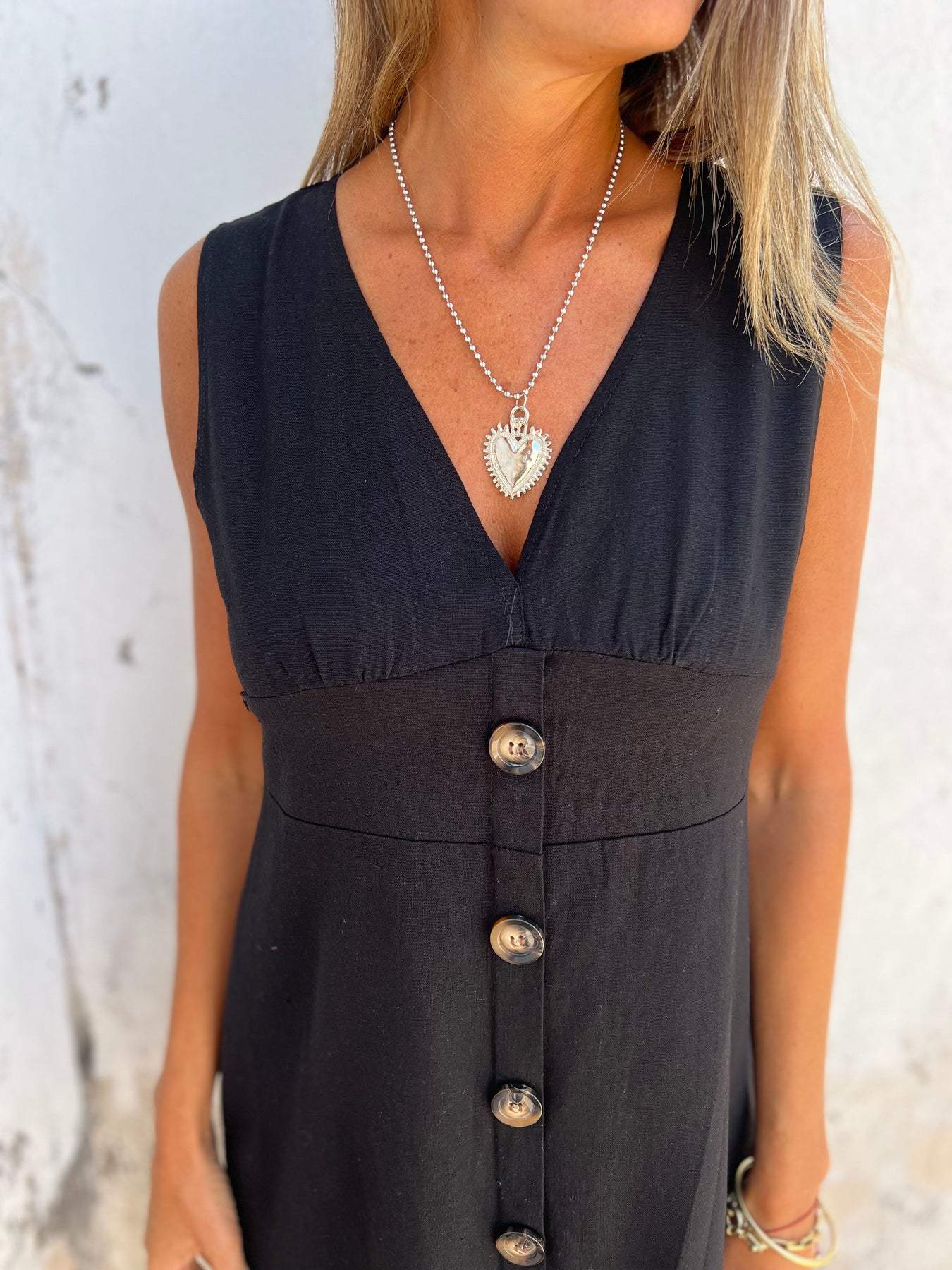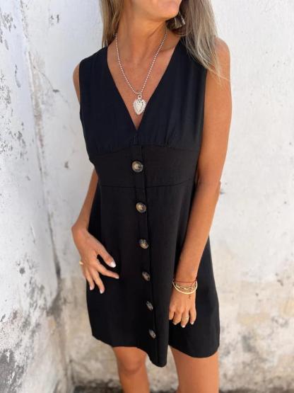 Cotton and Linen V-neck Button-down Dress
