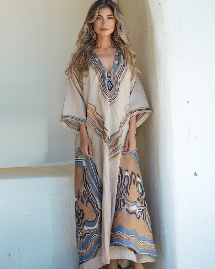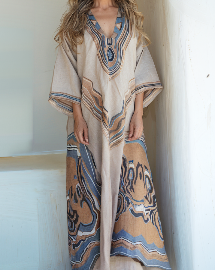 Contton & Linen Long Sleeve Kaftan Maxi Dress