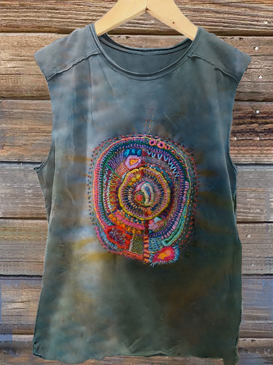 Hippie Peace Love Art Print 100% Cotton Casual Tank Top