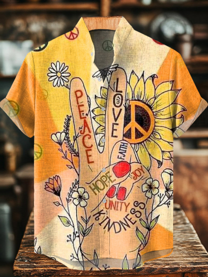 Hippie Peace Love Art Print Casual 100% Cotton Shirt