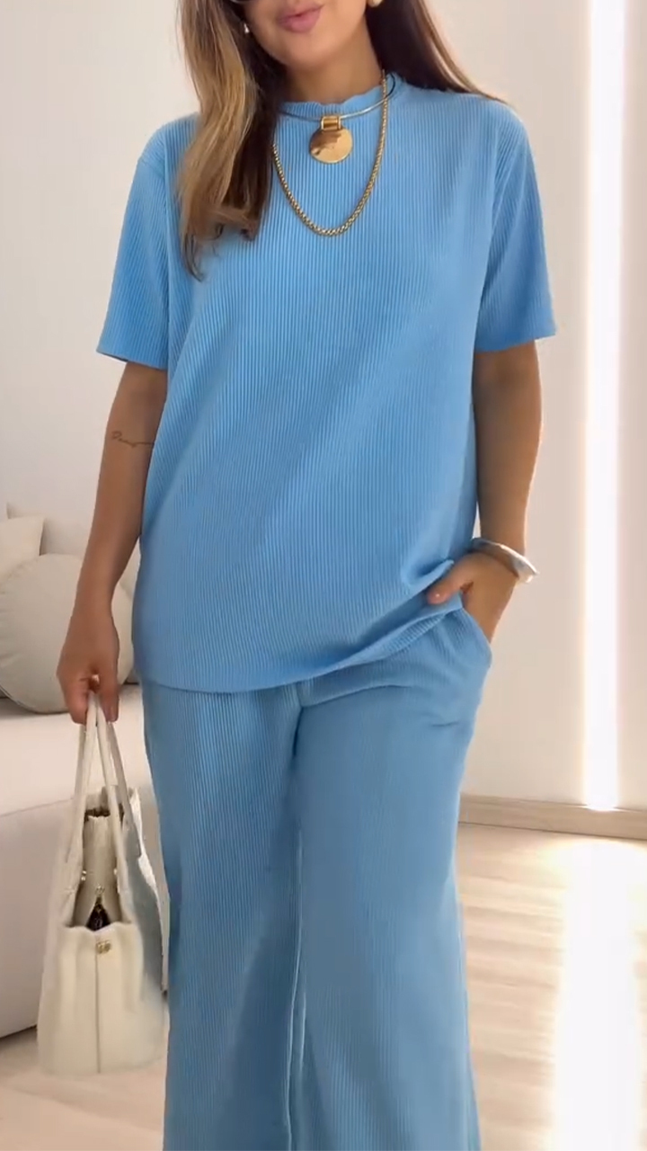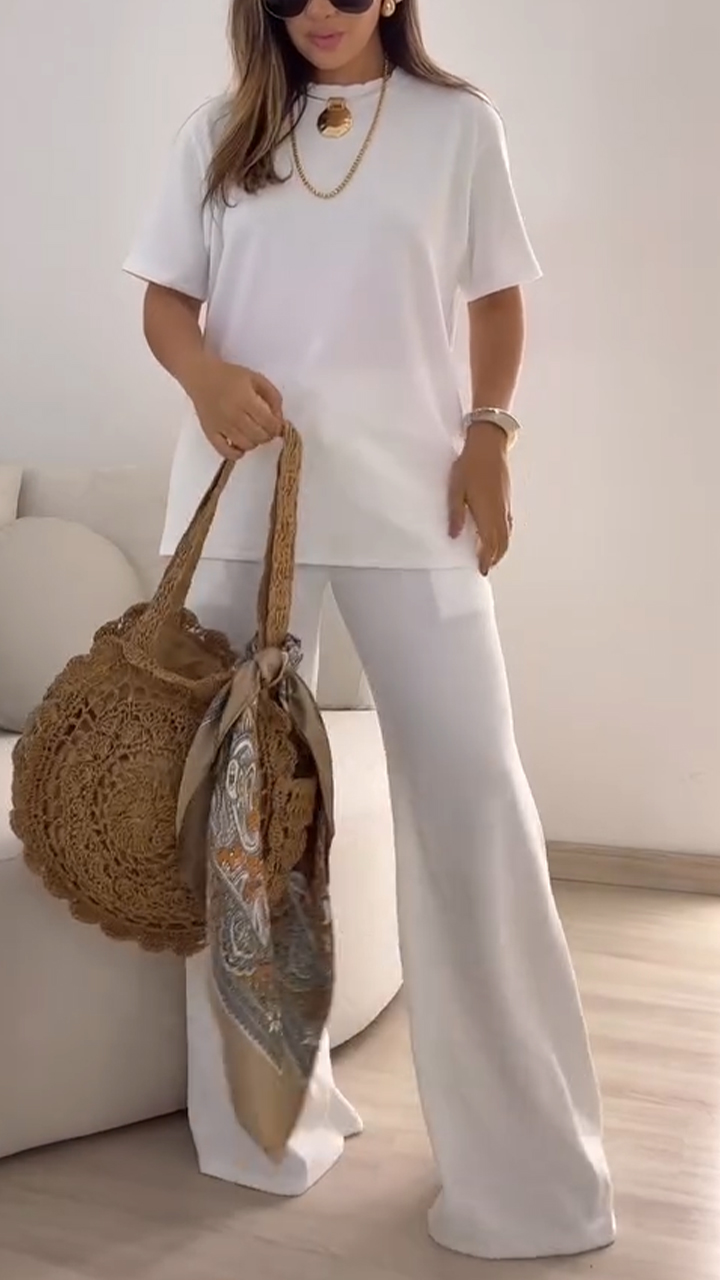 Crafted from a soft, breathable fabric, this two - piece set offers a relaxed yet flattering fit. The top drapes gently, ensuring you stay cool and comfortable, and the pants’ wide - leg design allows for unrestricted movement. Whether you’re tackling tasks at your desk or meeting friends for a coffee, this set keeps you feeling at ease while looking utterly chic.