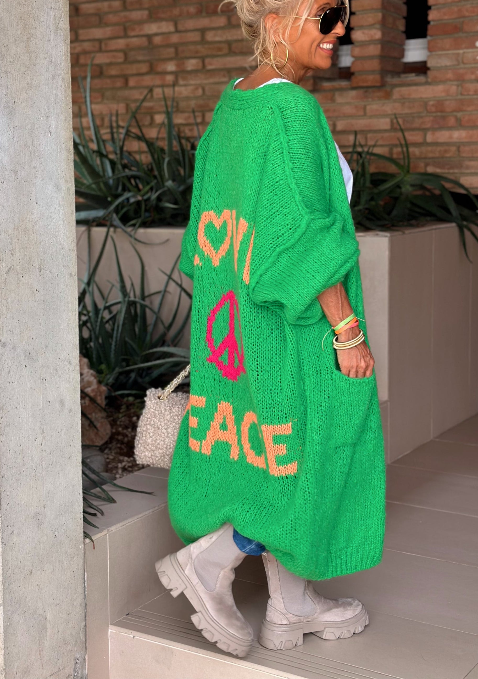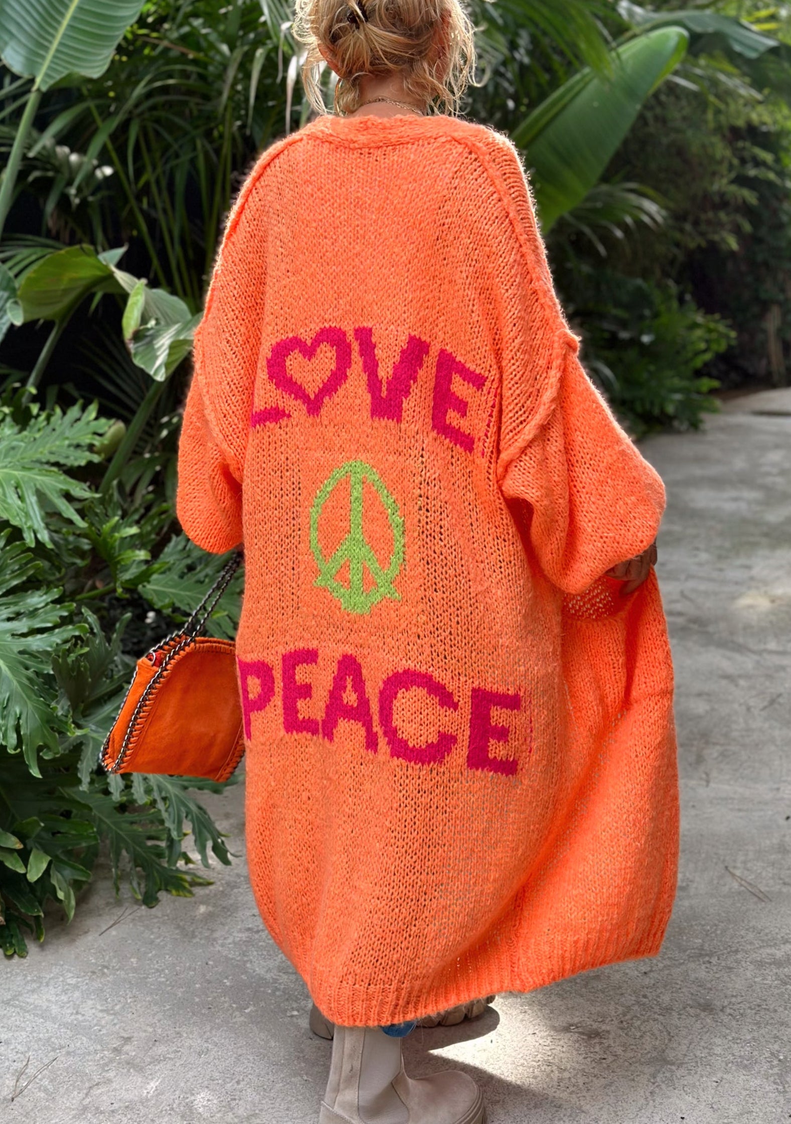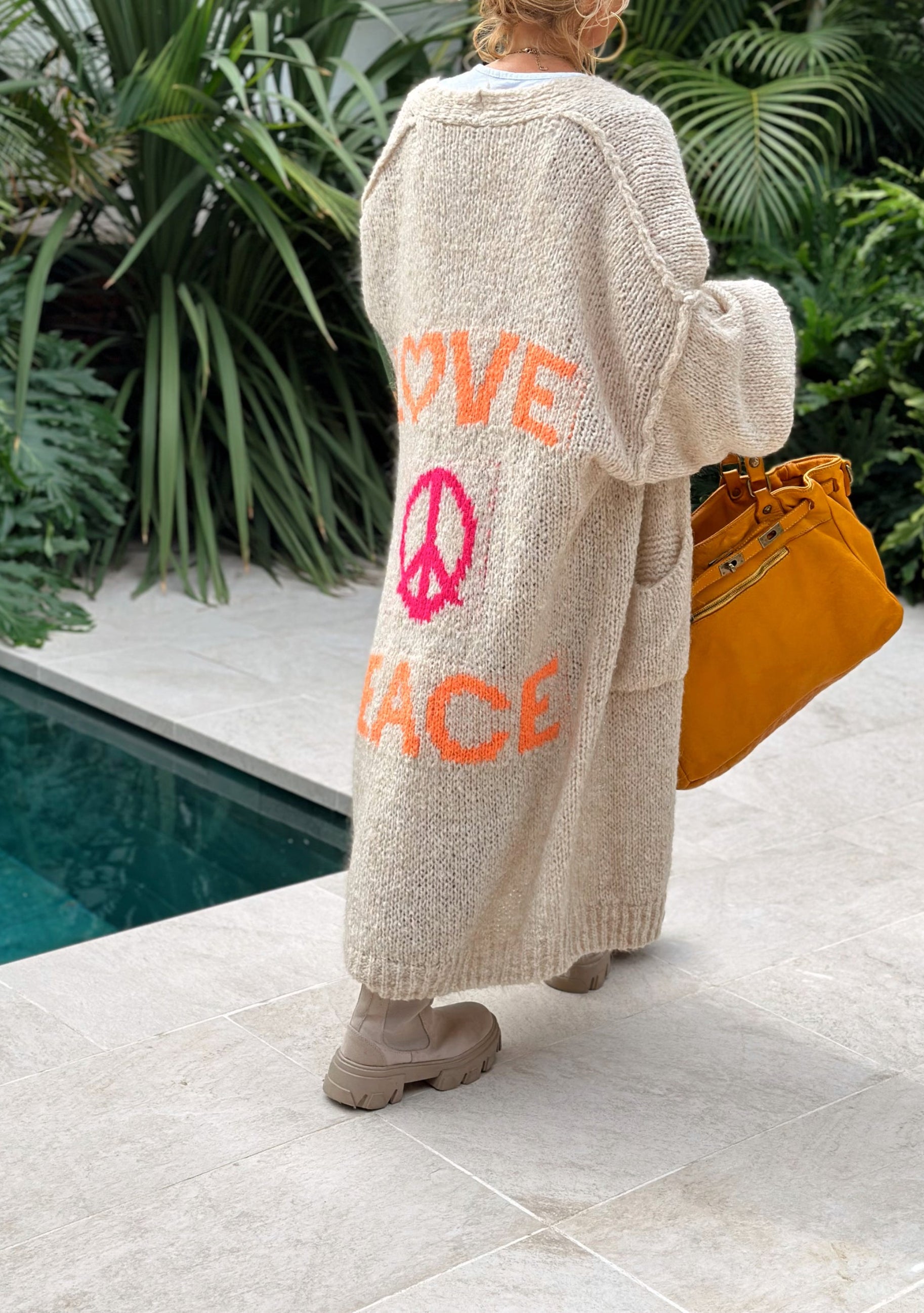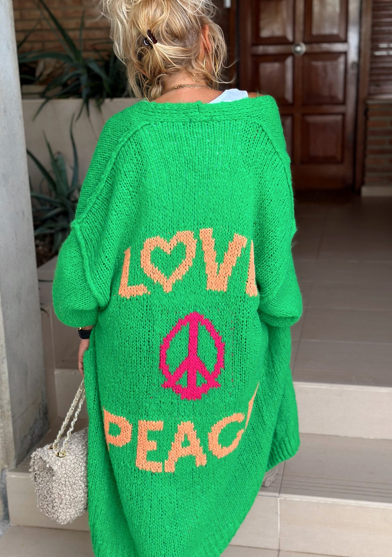 Revamp your everyday style with this enchanting Cardigan – a perfect synthesis of fashion and comfort. Embrace the blend of comfort and panache with the Peace Long Knit Cardigan and let your clothes tell your unique story.