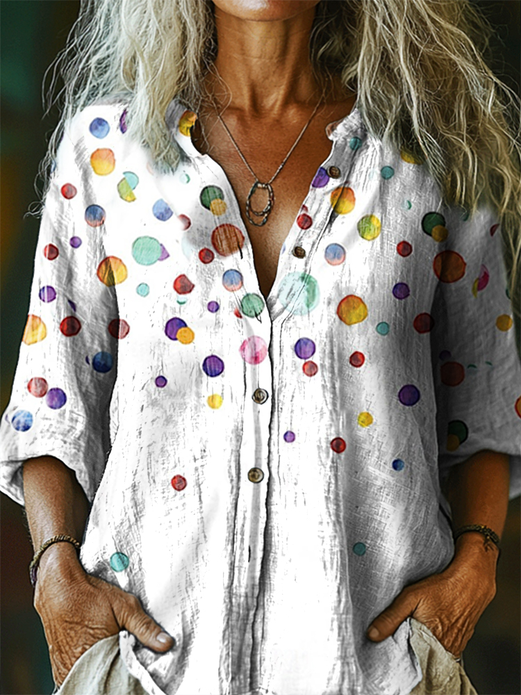 Women's Colorful Polka Dot Pattern Art Print Casual Cotton Linen Shirt
