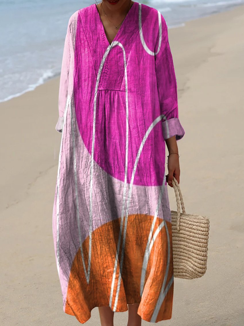 Women's Pink Orange Yellow Art Abstract Print Flowy Dress