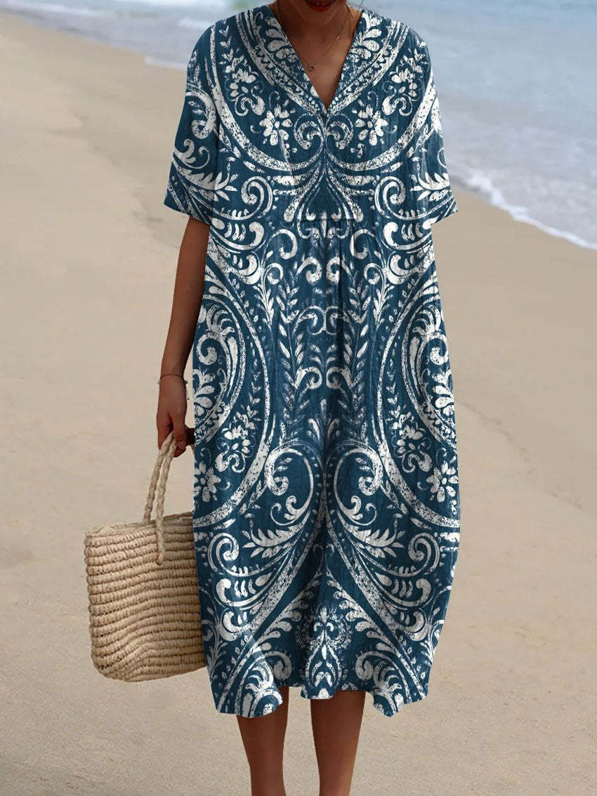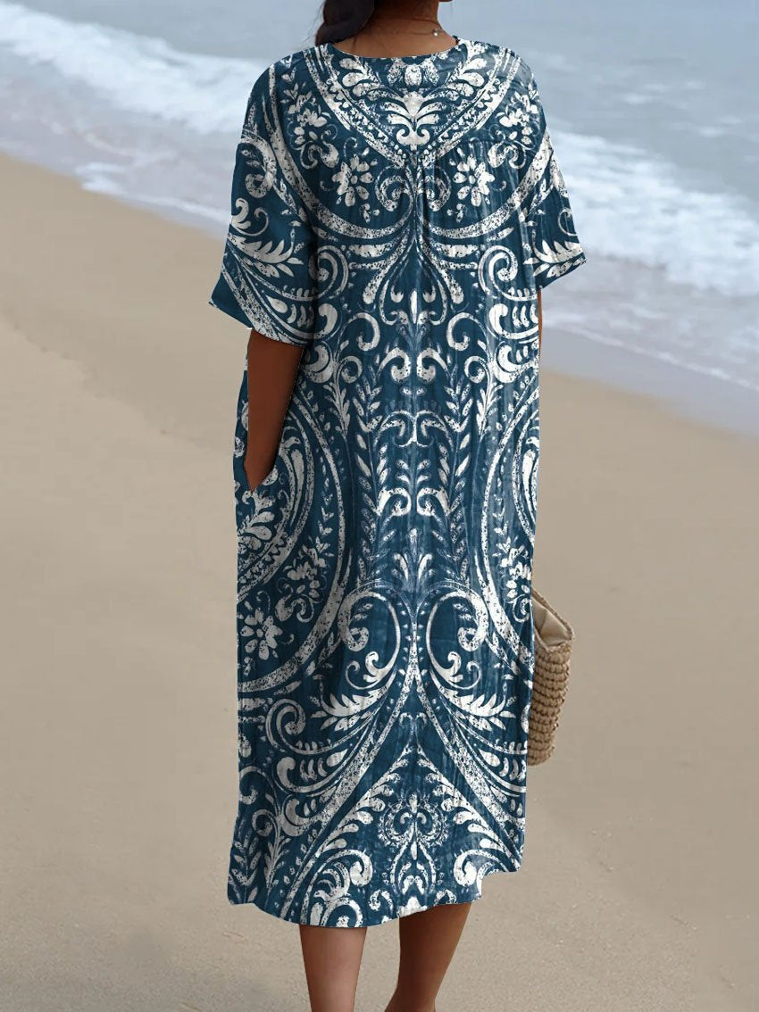 Women's Vintage Ethnic Floral Art Print Casual Flowy Dress