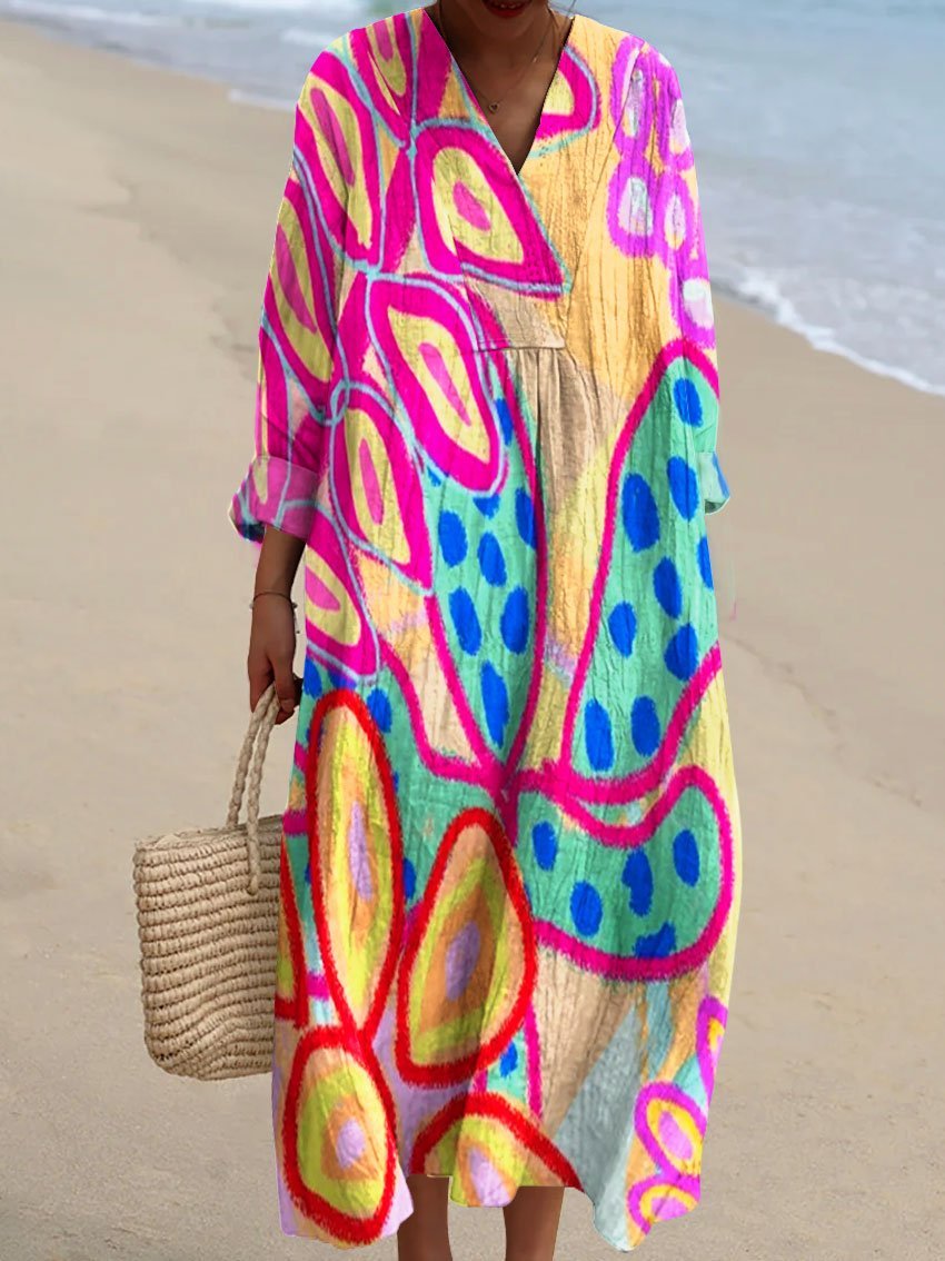 Women's Vintage Floral Art Print Flowy Dress