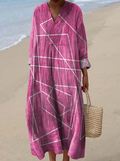 Women's White Line Art Fuchsia Magenta Minimalist Hot Pink White Lines Bold Art Print Flowy Dress