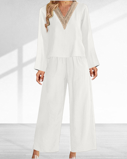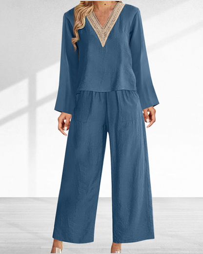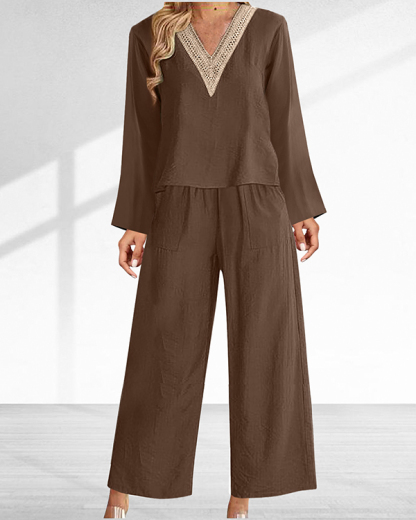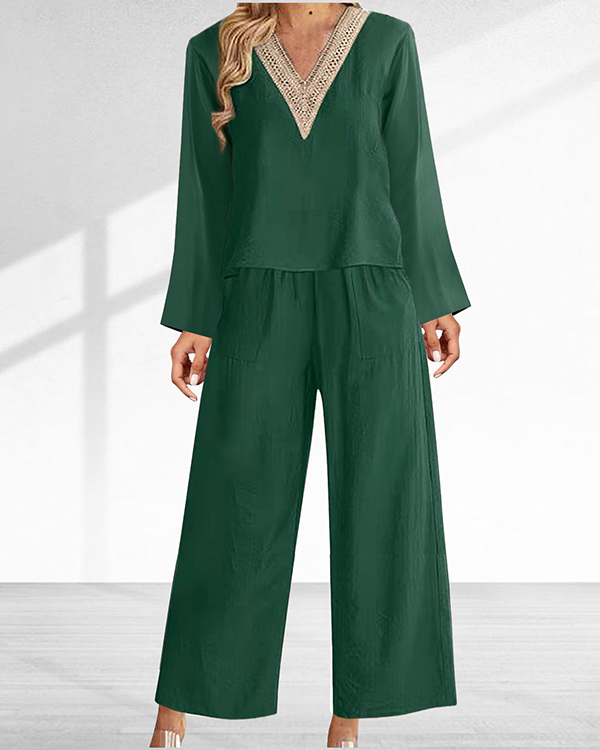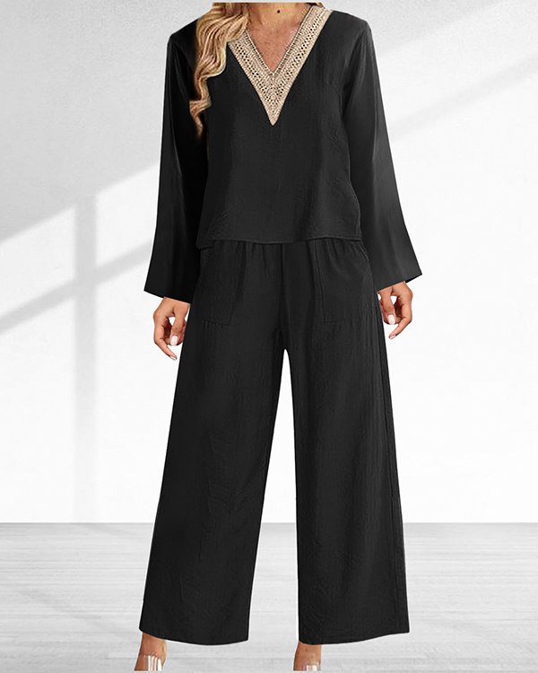Casual and Comfortable Long Sleeve Boho V Neck Two-piece Suit