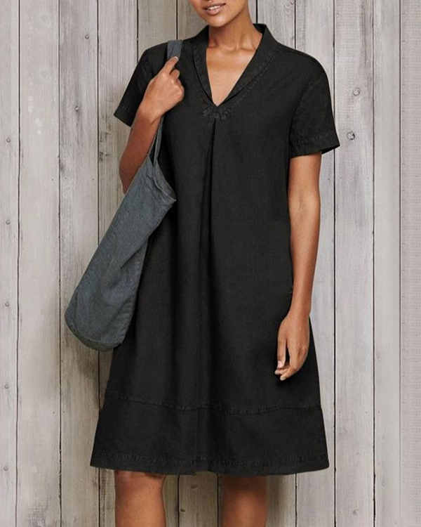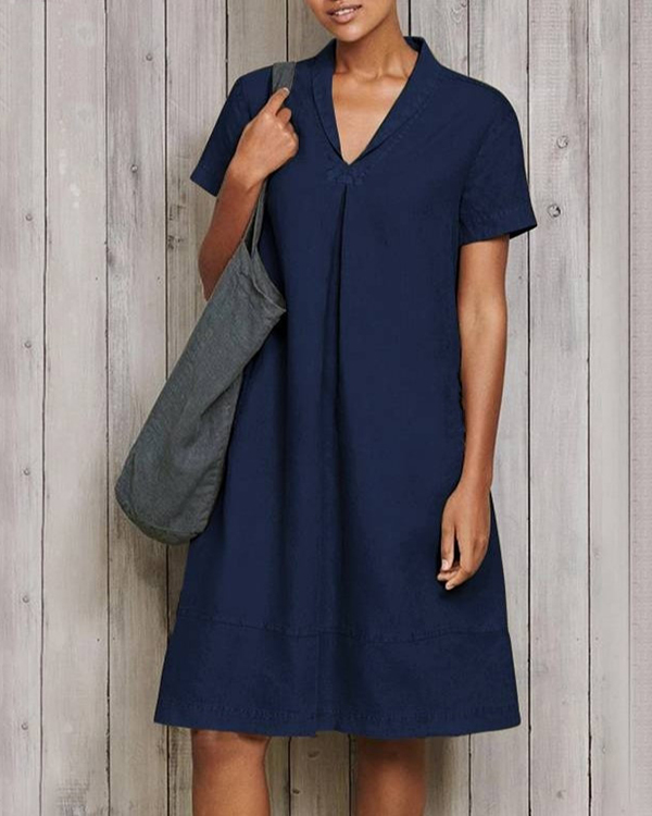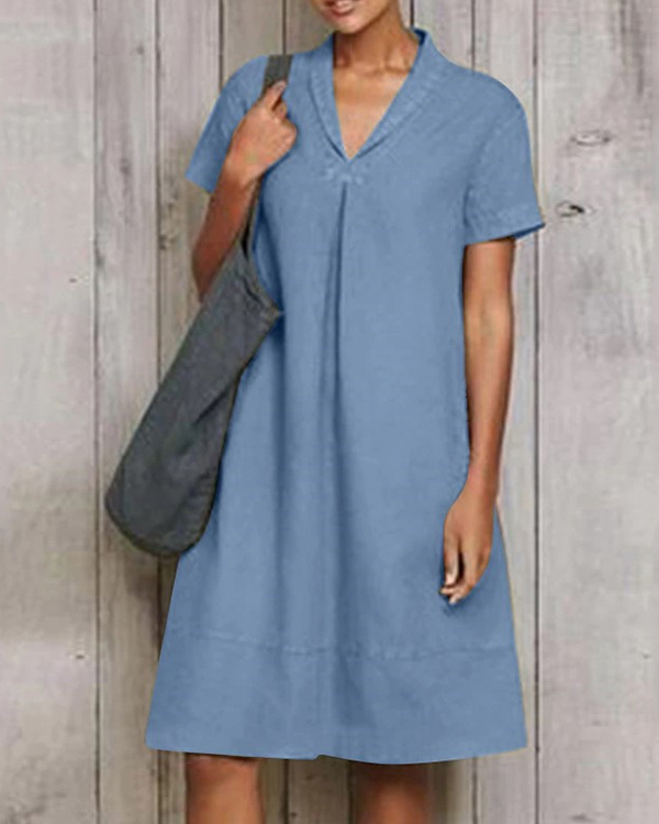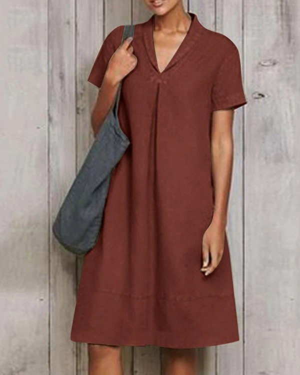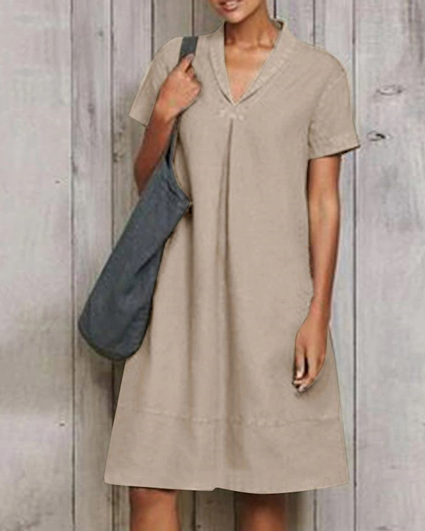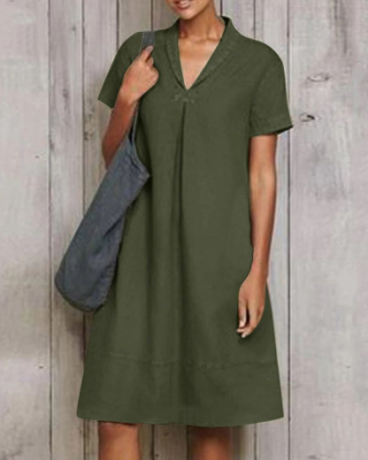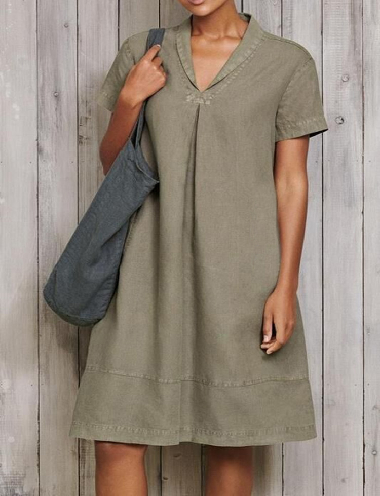Casual Short Sleeve Pure Linen Mini Dress