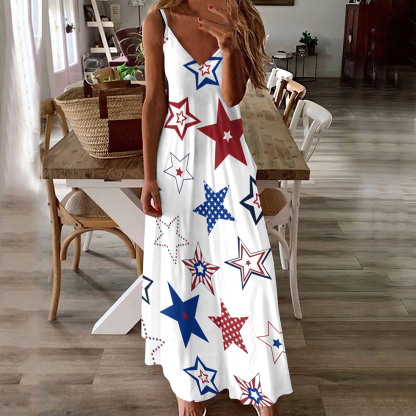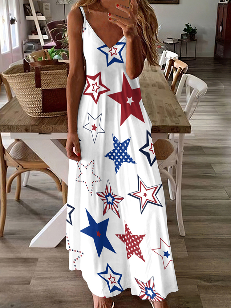 Comstylish American Flag Star Print Slip Maxi Dress