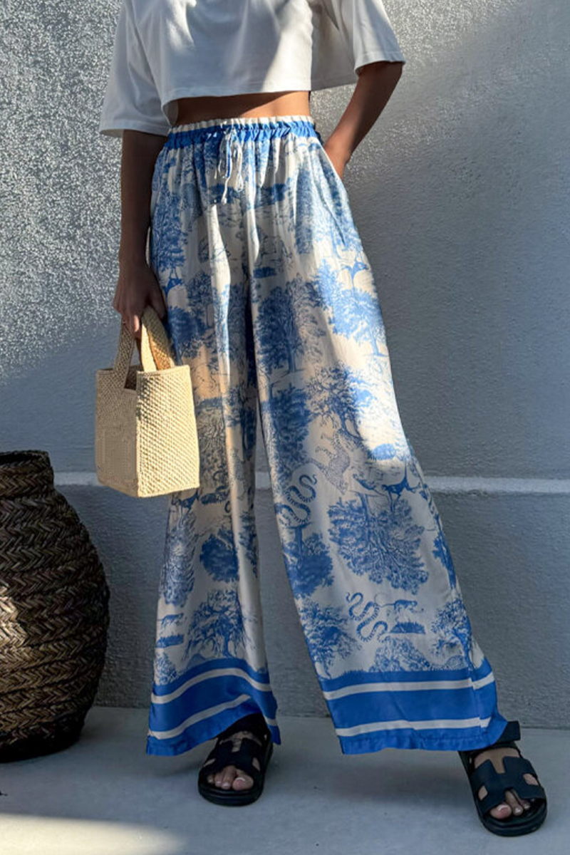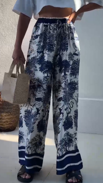 Step into a world of artistic charm with these blue - white printed wide - leg pants—a seamless blend of bohemian flair, comfortable design, and versatile allure for the woman who craves effortless style with a touch of global inspiration.