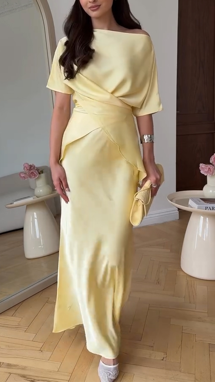 Step into a world of refined glamour with this pale yellow asymmetric wrap maxi dress—a seamless blend of sophisticated design, luxurious fabric, and understated allure for the woman who commands attention with grace.