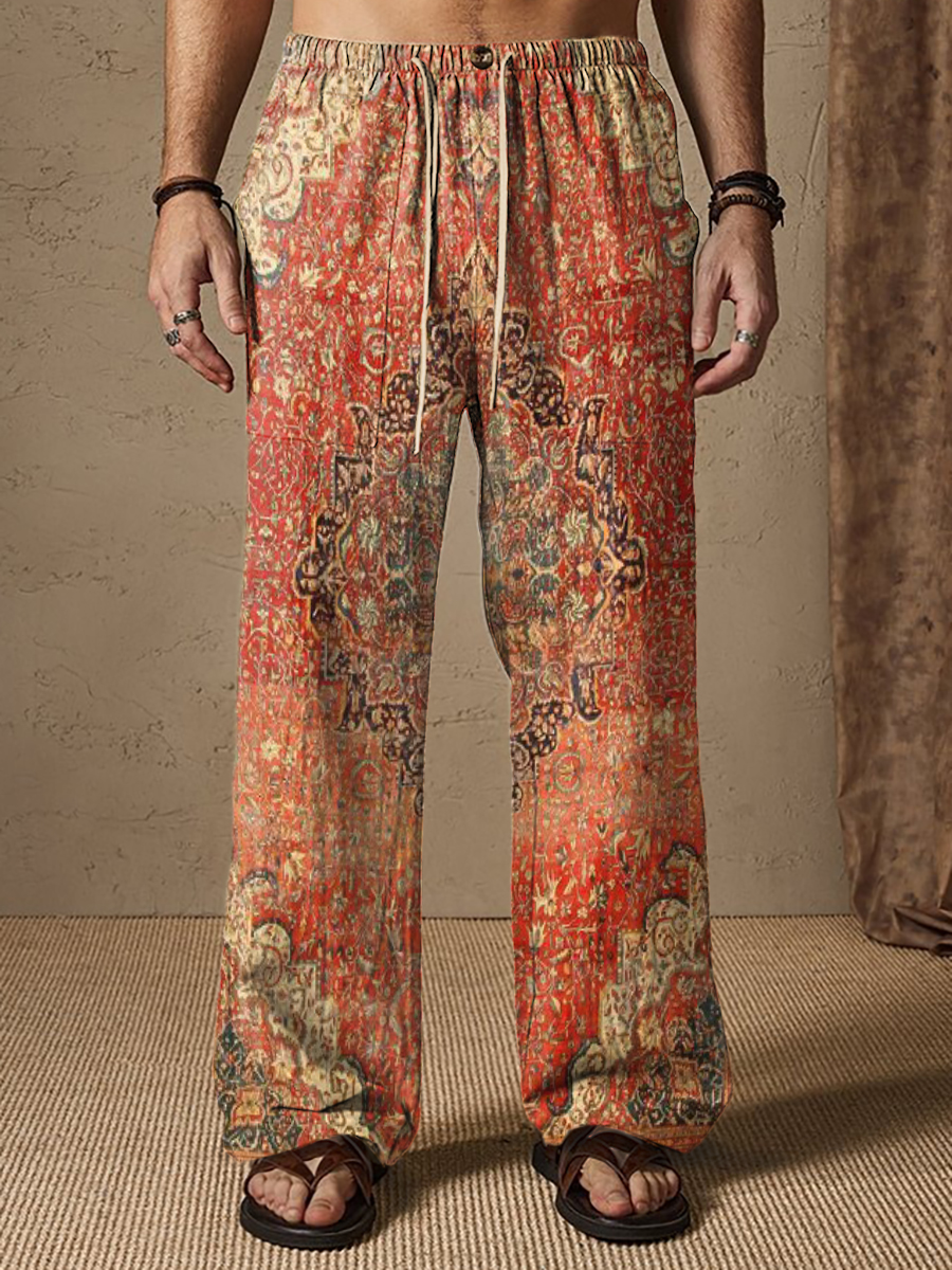 Men's National Floral Art Pattern Print Comfy 100% Cotton Pants