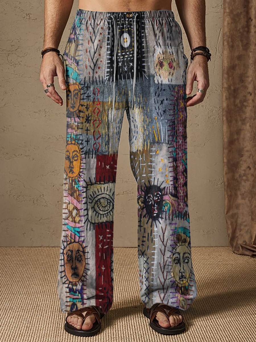 Men's Patchwork Color blocks Eyes Face Print Comfy 100% Cotton Pants