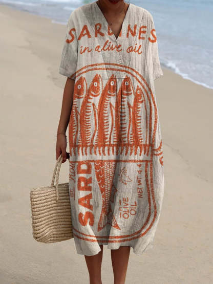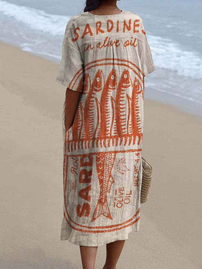 Sardine Can Decorative Pattern Flowy Dress