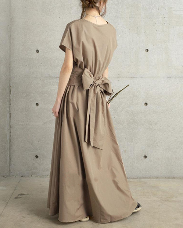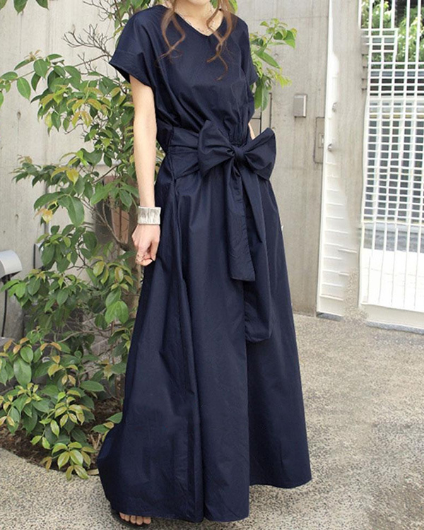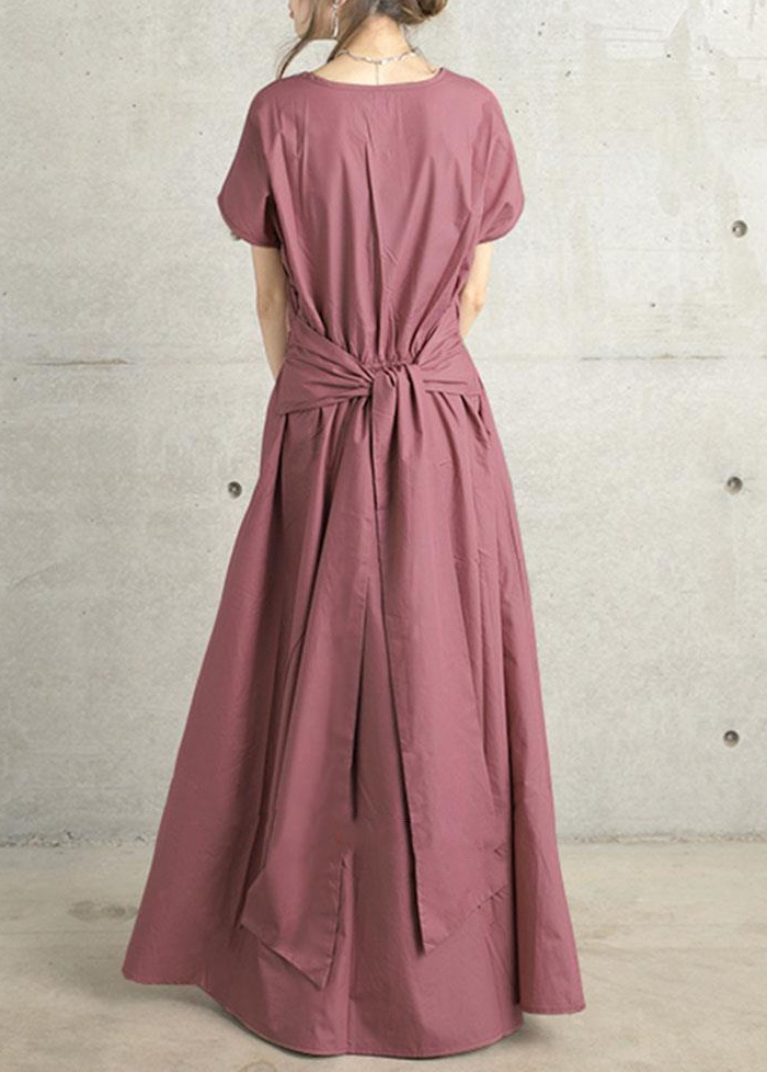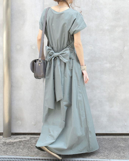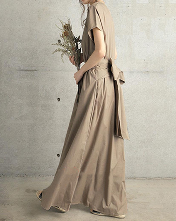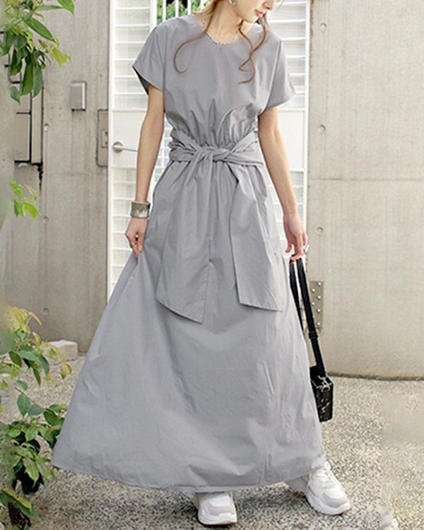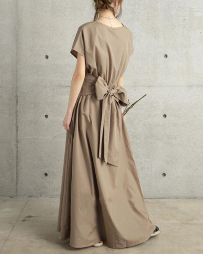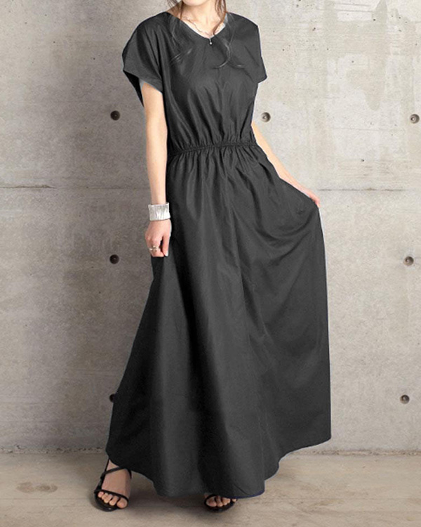 Solid Color Simple Short-sleeved Long Dress