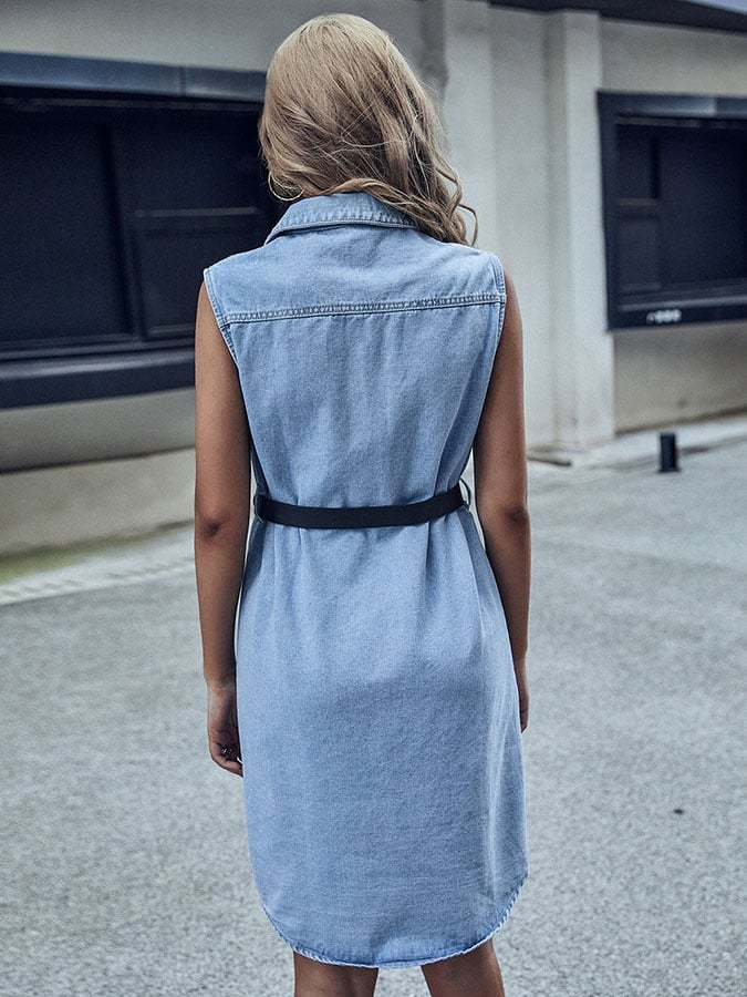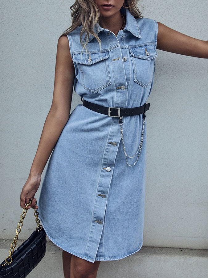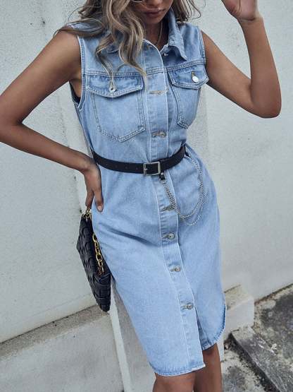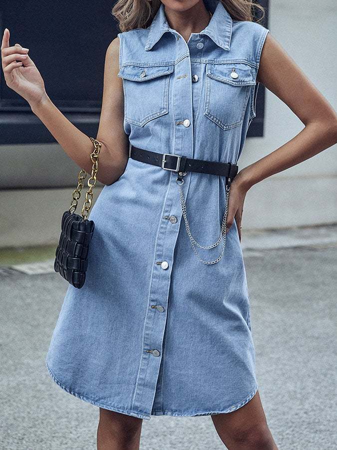 Versatile temperament dress, buttock skirt, lapel, sleeveless waist, denim skirt